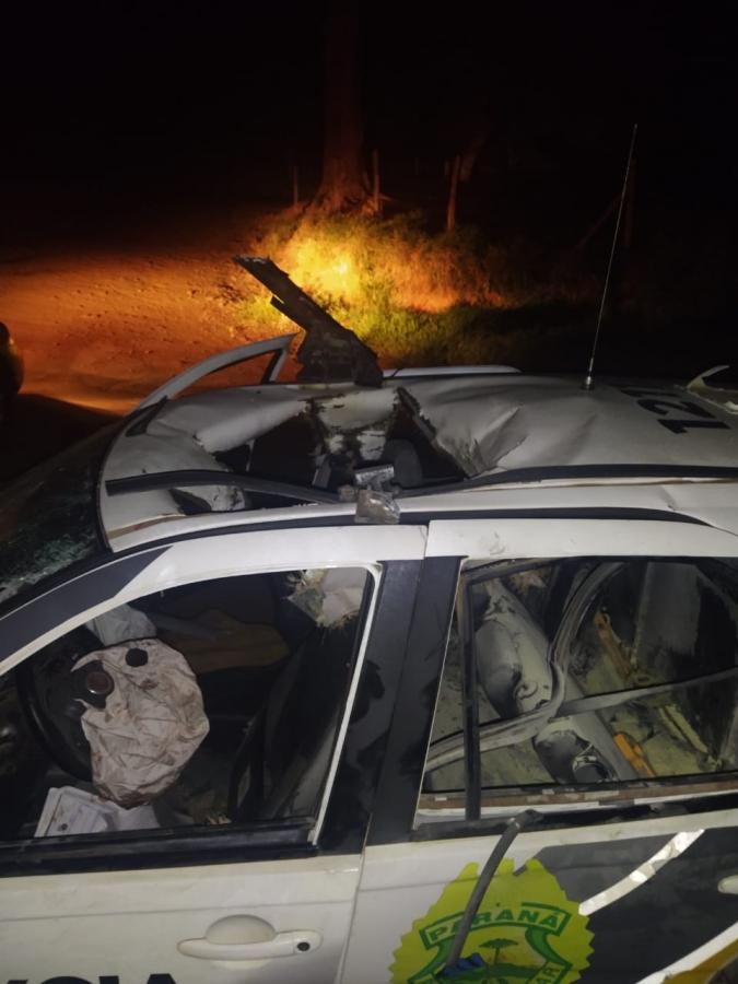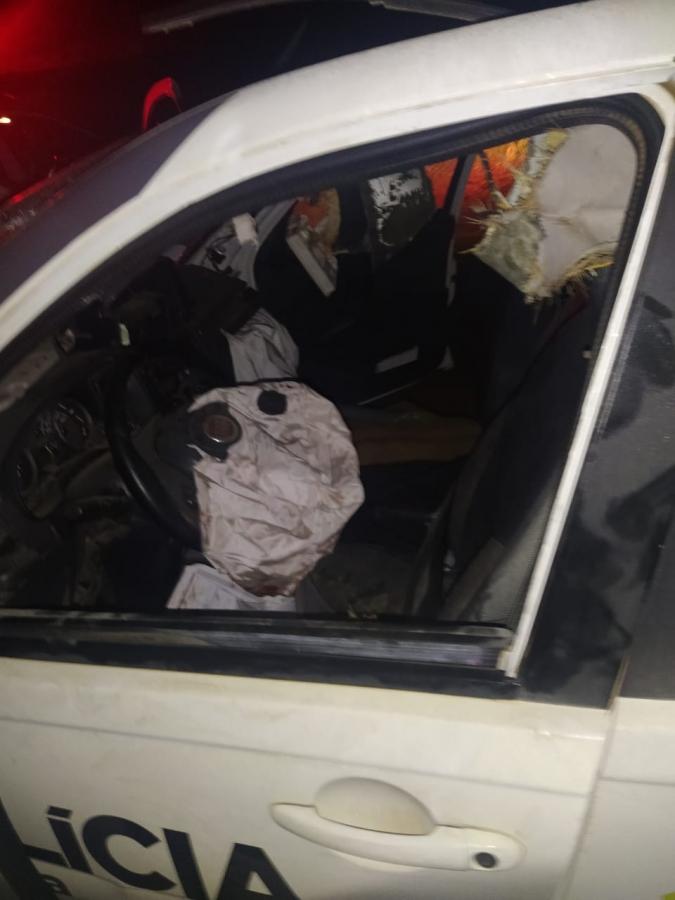 Conforme informações constantes do Boletim de Ocorrências, uma viatura Palio Weekend teria parte do teto estourado, com partes do veículo sendo espalhadas pela rua.