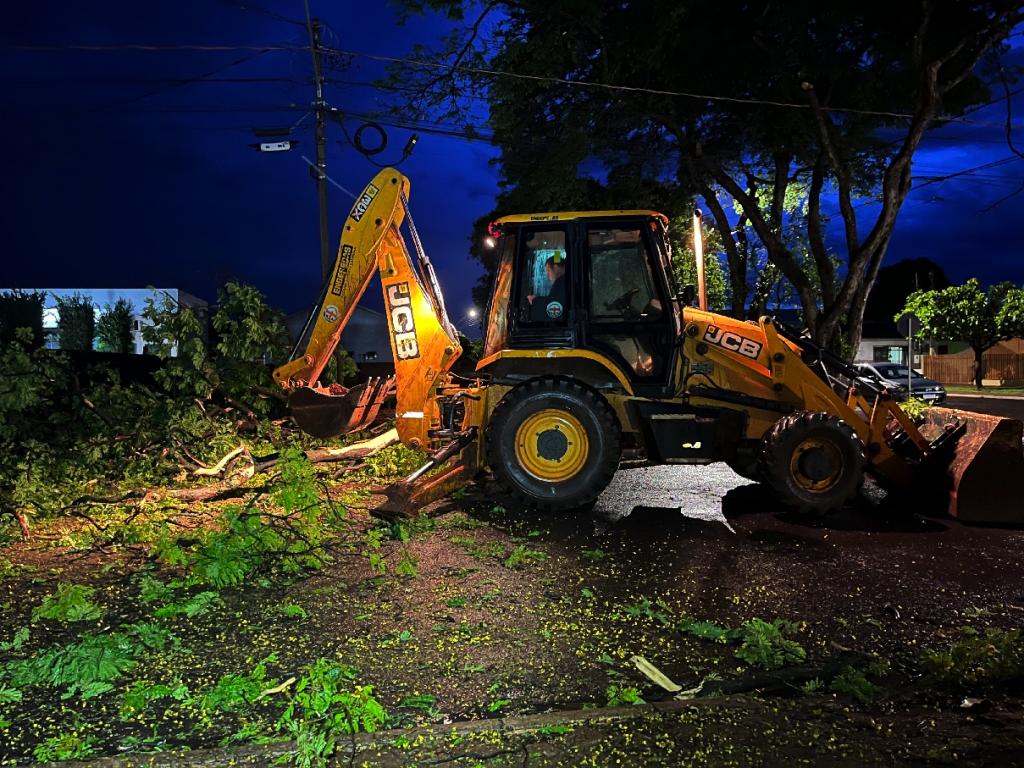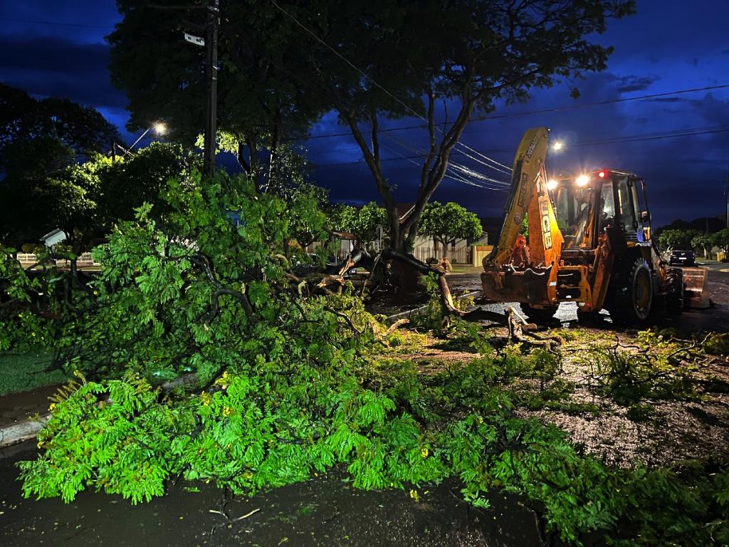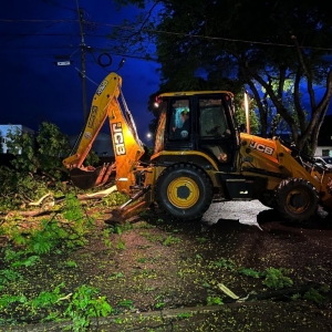 Uma equipe da Prefeitura Municipal foi acionada e utilizou uma máquina para remover parte da árvore. Outra equipe, equipada com motosserra, trabalhou na retirada do tronco que ainda permanecia sobre a pista, restabelecendo o tráfego no local.