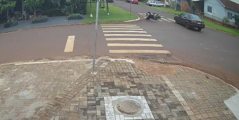 Imagens de uma câmera de segurança registraram o momento exato do acidente ocorrido no cruzamento da Rua Maripá com a Rua Boa Vista, em Nova Santa Rosa, no início da semana. O vídeo mostra o automóvel Santana colidindo contra uma motocicleta e, em seguida, o motorista descendo do carro, observando a vítima caída e fugindo sem prestar socorro. (clique aqui para assistir o vídeo)