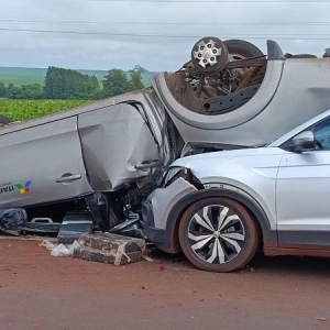 Durante a perseguição, já nas proximidades do trevo de Tupãssi, o motorista perdeu o controle da caminhonete, que capotou e acabou parando sobre o T-Cross que seguia no sentido contrário.