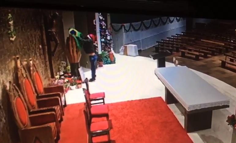 Câmeras de segurança flagraram o momento que um homem furtou uma imagem do altar da Catedral Nossa Senhora Aparecida, no Centro de Cascavel. O caso ocorreu no início da manhã de hoje.