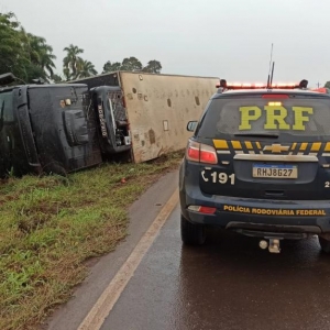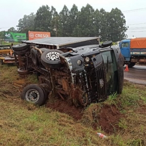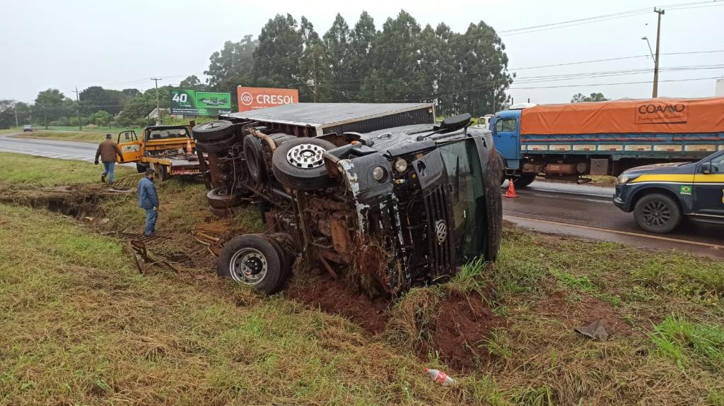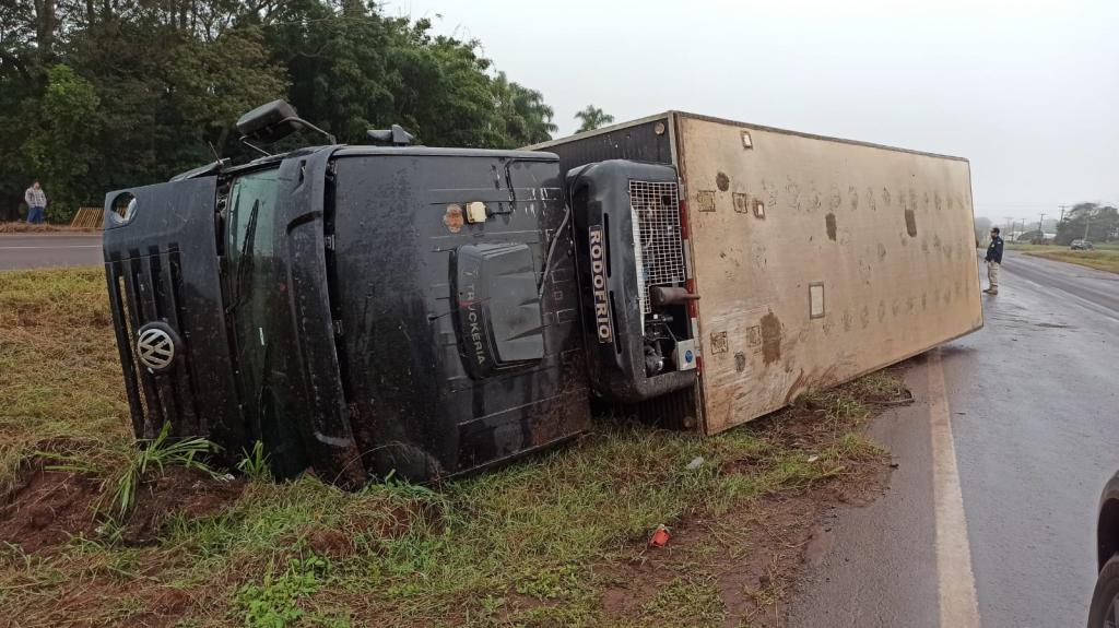 O segundo tombamento aconteceu no distrito cascavelense de Sede Alvorada, a carreta modelo Volkswagen também câmara fria, mas com placa de Foz do Iguaçu trafegava em uma reta e o condutor perdeu o controle da direção, saiu da pista e tombou, apesar dos danos nos dois veículos não tem informações de vítimas, a polícia rodoviária federal atendeu as duas ocorrências.