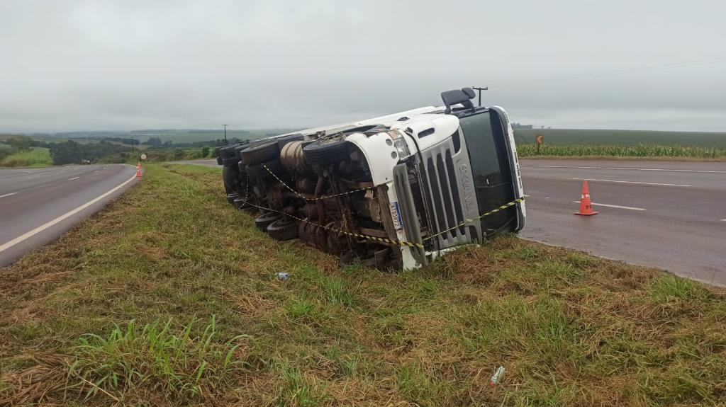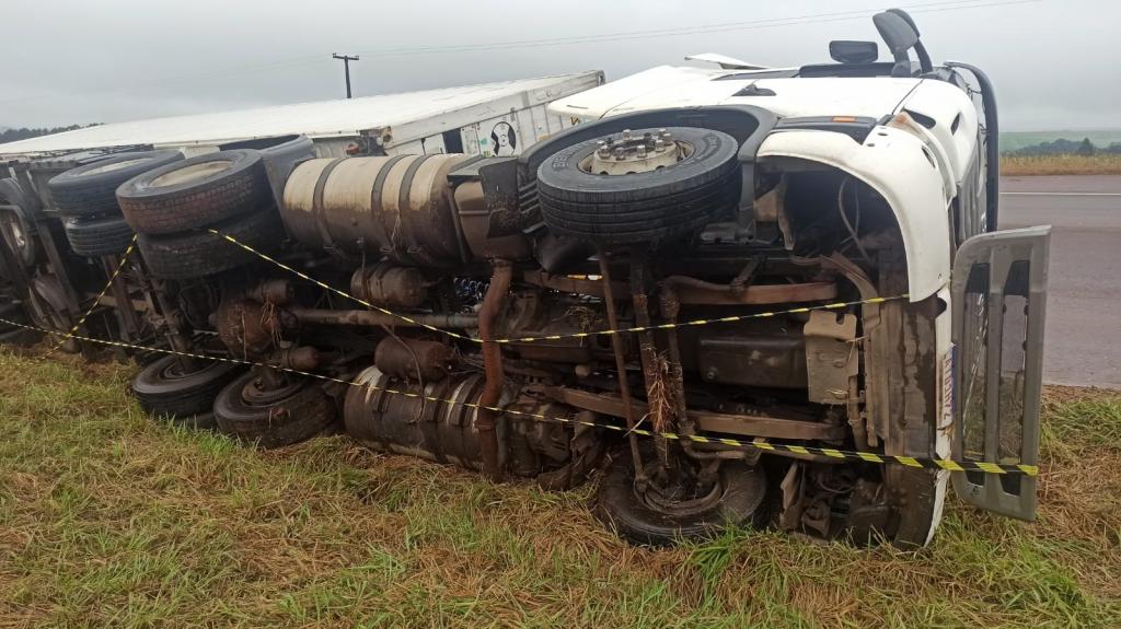 O primeiro envolveu uma carreta modelo Scania câmara fria com placas Mercosul entre o viaduto da Egídio Munaretto e a ponte sobre o Rio Lopei em Toledo, a careta trafegava no sentido a Toledo e após passar a ponte em uma curva o motorista perdeu o controle da direção saiu da pista e tombou no canteiro central da rodovia.