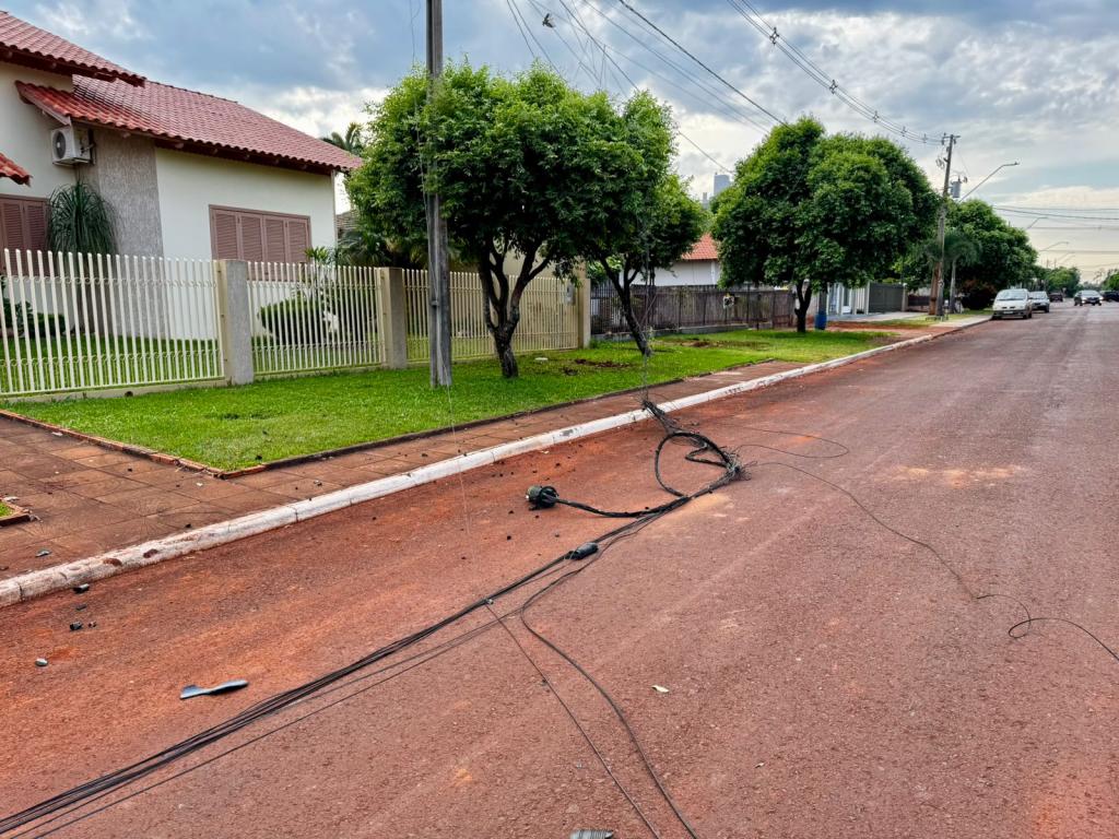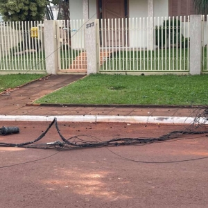 A situação foi percebida logo nas primeiras horas da manhã. A principal suspeita é de que um veículo de grande porte tenha passado pelo local durante a madrugada ou no início da manhã e acabou enroscando na fiação instalada sobre a rua, arrancando parte dos cabos.