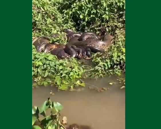 Moradores da região de Altônia fizeram um registro impressionante durante um passeio de barco pelo rio Piquiri: Uma sucuri-verde fêmea e seus filhotes – supostamente recém nascidos – foram flagrados em uma vegetação às margens do rio.
