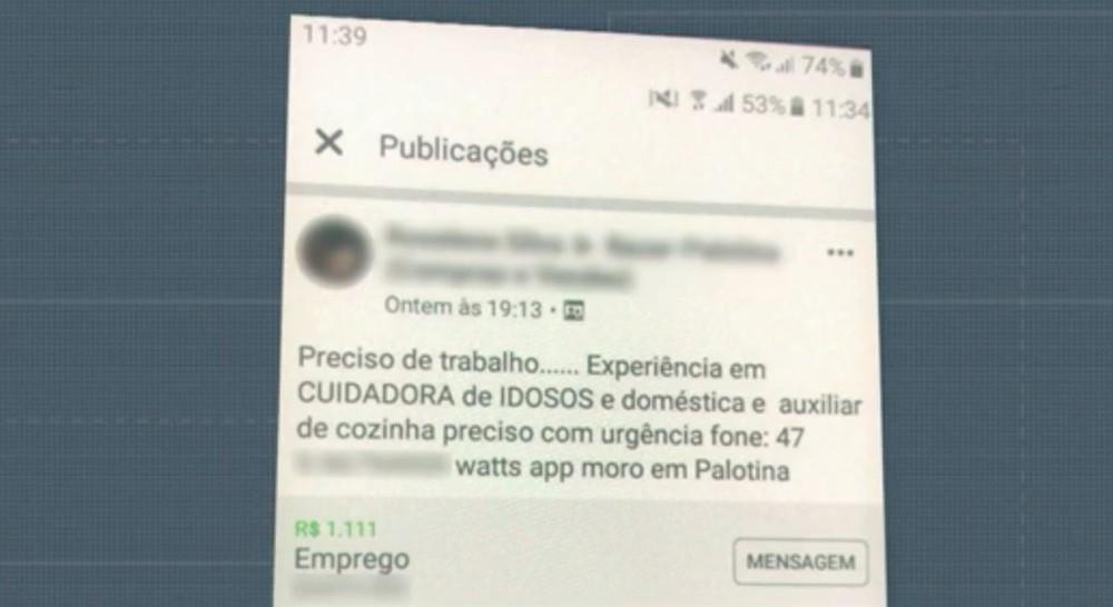 A vítima falou à Polícia Civil e ao Ministério Público sobre o caso. Conforme a polícia, ela relatou que fez uma postagem em uma rede social dizendo que precisava de emprego.