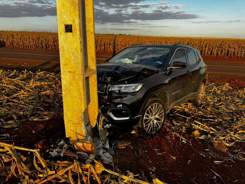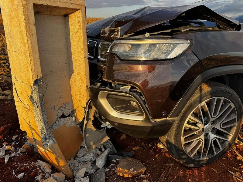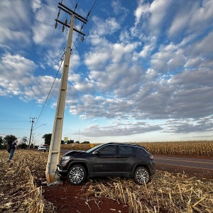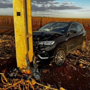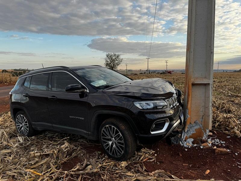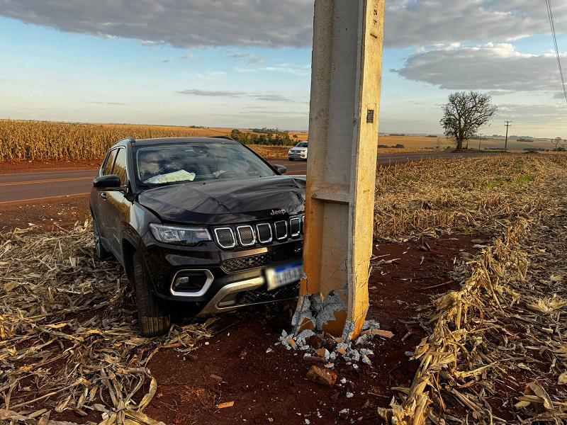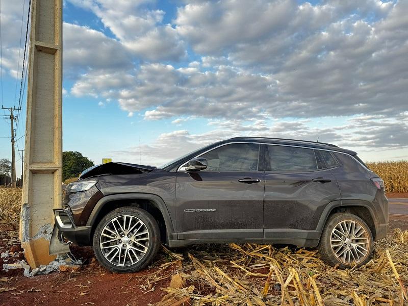 Um Jeep Compass ocupado por dois homens, residentes em Santa Catarina, colidiu contra um poste recentemente instalado em uma curva conhecida por sua dificuldade, na estrada que liga Nova Santa Rosa a Maripá, PR 491 em Novo Blumenau. O acidente aconteceu no final da tarde desta quarta-feira (09), no trecho onde muitos motoristas que não conhecem a via acabam se surpreendendo com a curva acentuada.