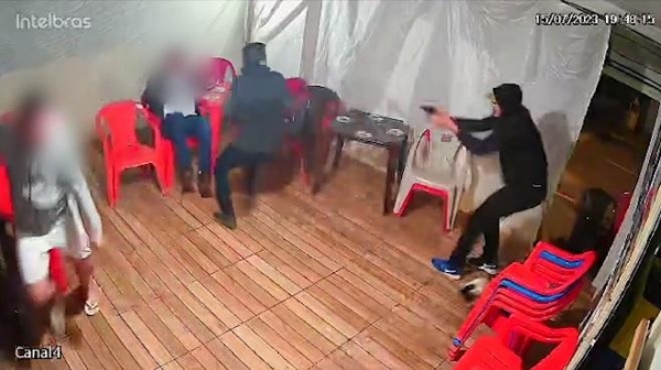 Foram divulgadas hoje pela Polícia Civil imagens do crime de homicídio registrado no último sábado (15/07) em estabelecimento comercial da Rua Reinaldo Barilli, Bairro São Francisco, onde foi vítima de disparos de arma de fogo Leandro Gomes de Azevedo, 43 anos.