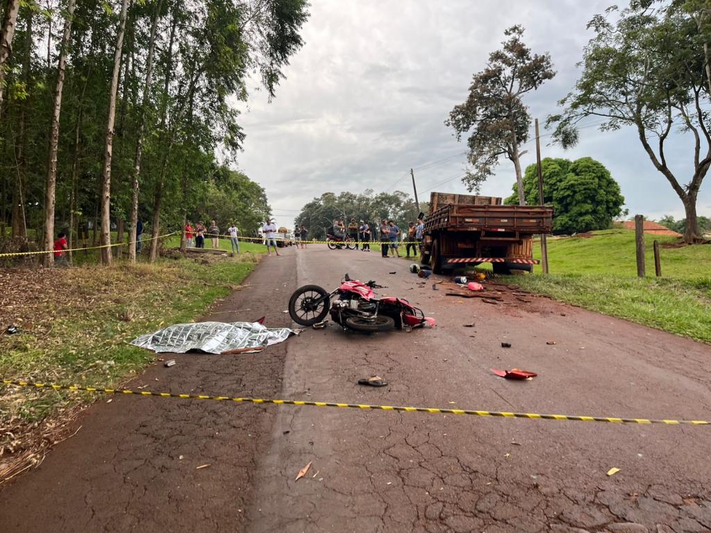 Um grave acidente de trânsito tirou a vida de um jovem motociclista no fim da tarde de quarta-feira (15), em Maripá. A batida frontal envolveu uma motocicleta e um caminhão Chevrolet em uma estrada secundária próxima ao Lago Municipal, no trecho que dá acesso à PR-182, sentido Palotina.