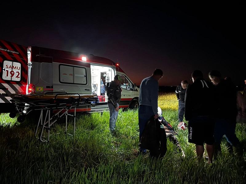 Um dos condutores, identificado como Paulo Roberto dos Santos, sofreu uma queda violenta, dando várias cambalhotas — cerca de sete, segundo relatos — antes de parar. A motocicleta Kawasaki que ele pilotava seguiu sozinha pela plantação e só parou aproximadamente um quilômetro e meio após o ponto de saída da pista. O piloto sofreu fraturas nos dois braços e foi socorrido em estado grave pelo SAMU de Palotina, sendo encaminhado ao hospital do município.