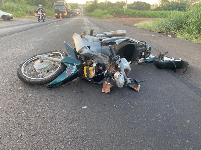 A moça era a condutora da motocicleta Honda Biz, com placa de Mercedes, que no final da tarde desta quarta-feira (13) invadiu a BR-163