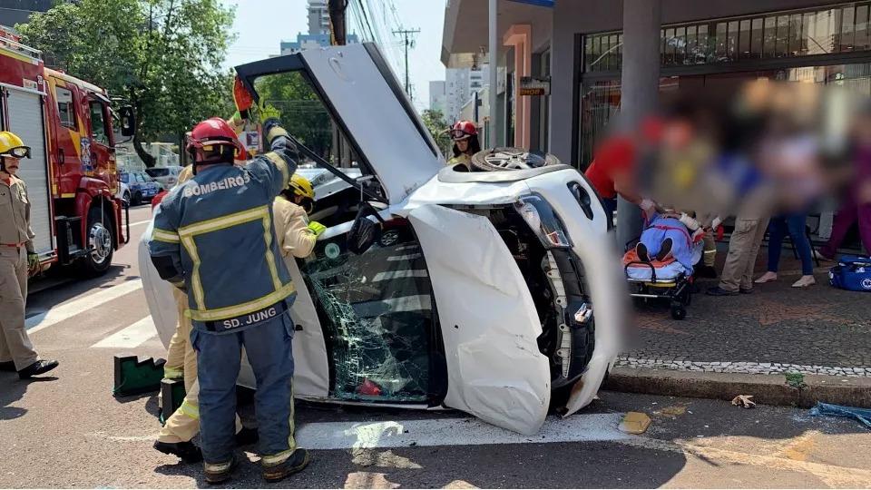 De acordo com o Subtenente Lasta do Corpo de Bombeiros, os dois veículos seguiam pela mesma via, quando um deles teria tentado fazer o cruzamento na rotatória, manobra que não é mais permitida, e ocorreu a batida seguida do capotamento.