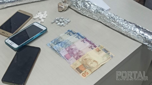 Após buscas na residência foi encontrado 4 celulares, 1 vídeo game Play Station 4 com 5 controles e 7 jogos, 2 rolos de papel alumínio e a quantia de rR74,00 reais em dinheiro.