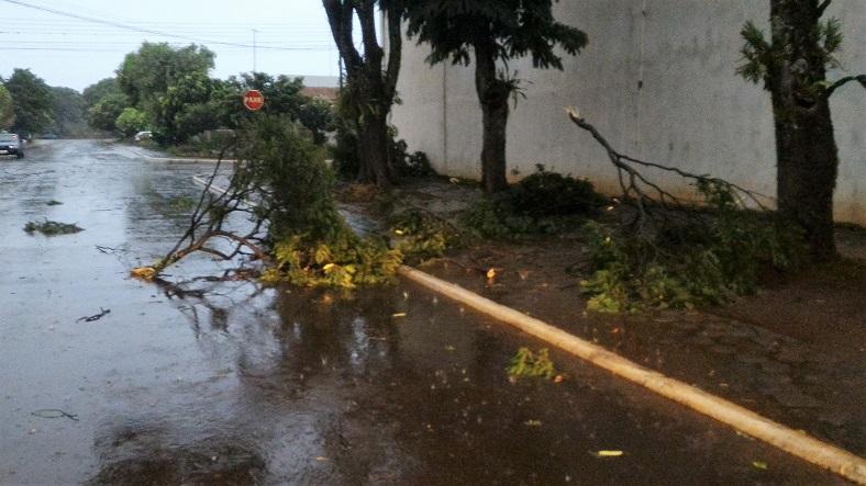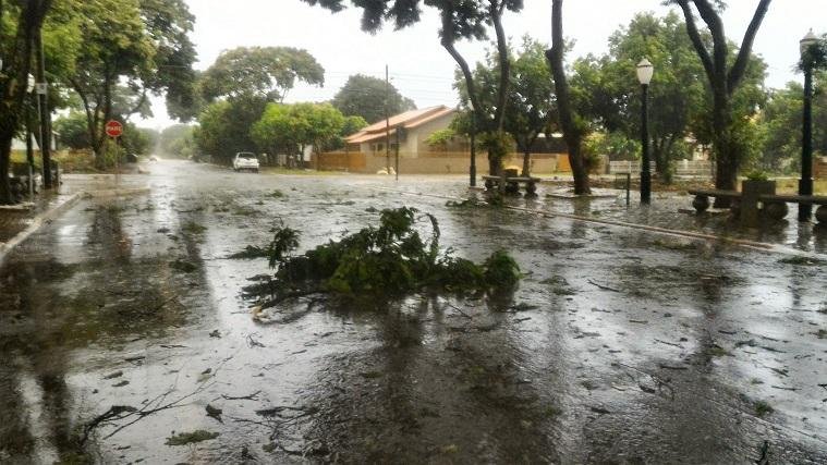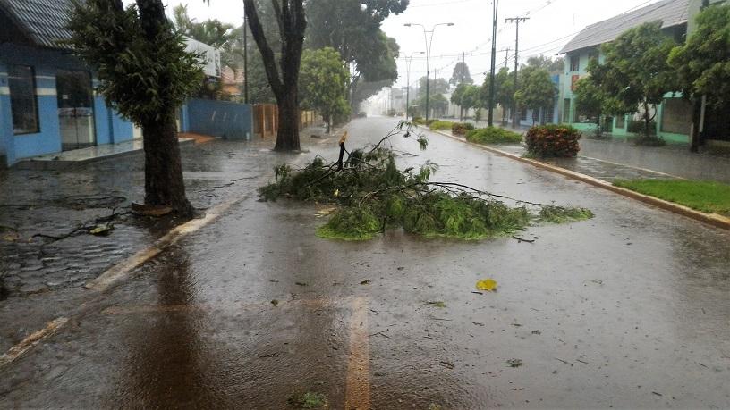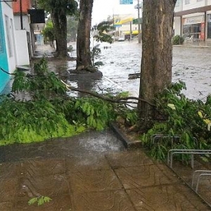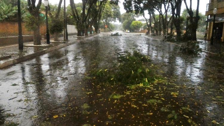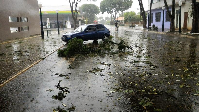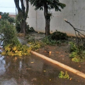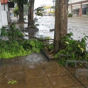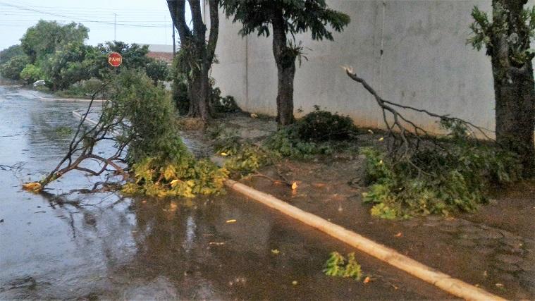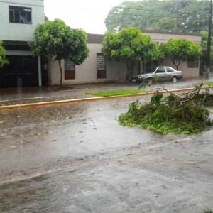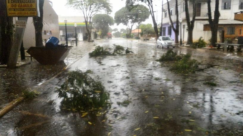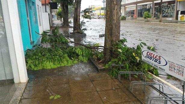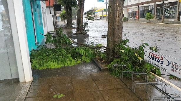 Algumas ruas ficaram alagadas com o volume excessivo de chuva, e uma equipe da Prefeitura Municipal esteve trabalhando para retirar os galhos que estavam atrapalhando o trânsito na área central da cidade.