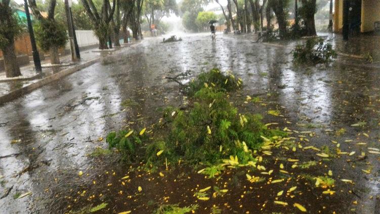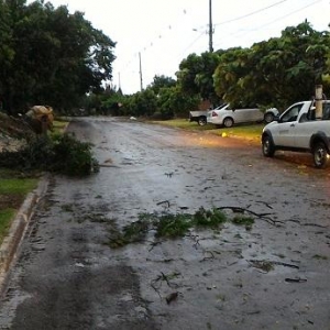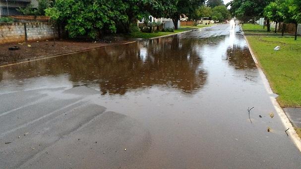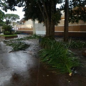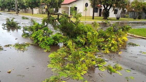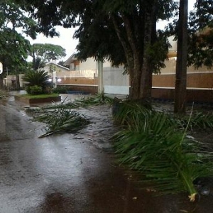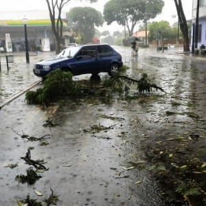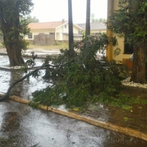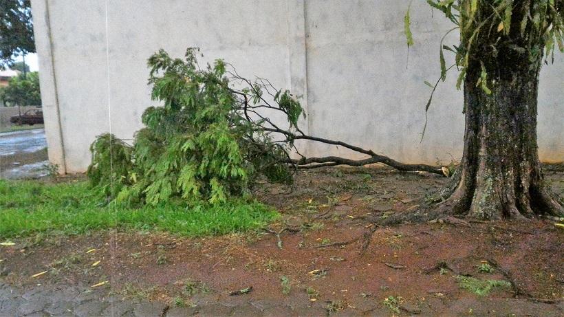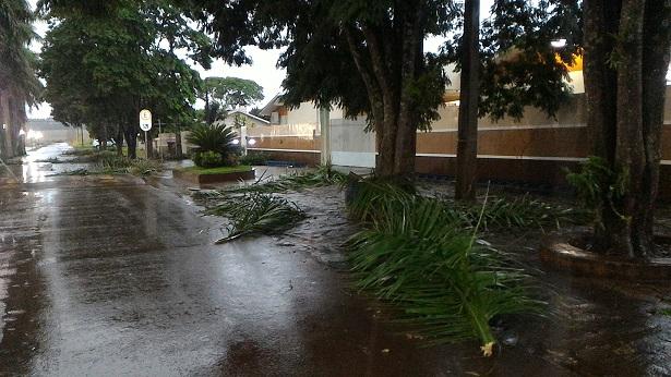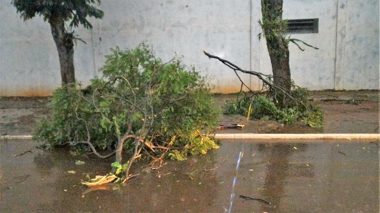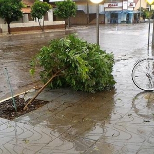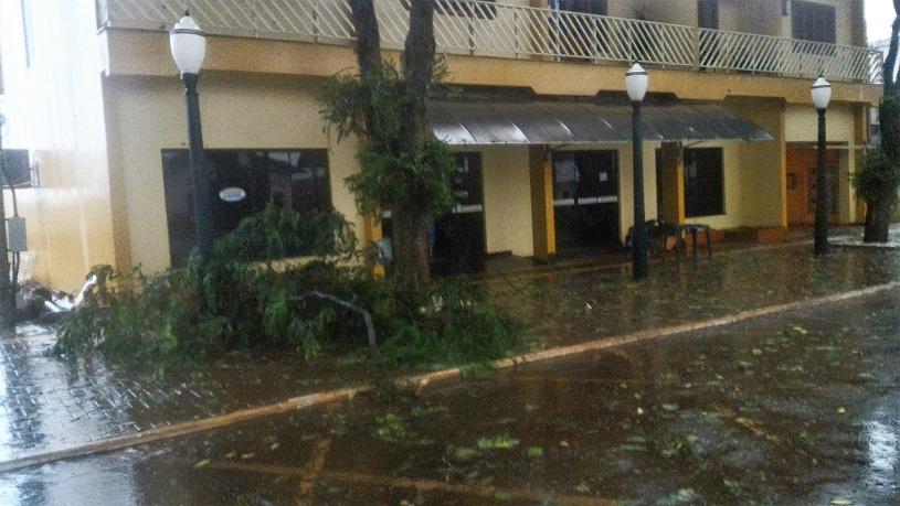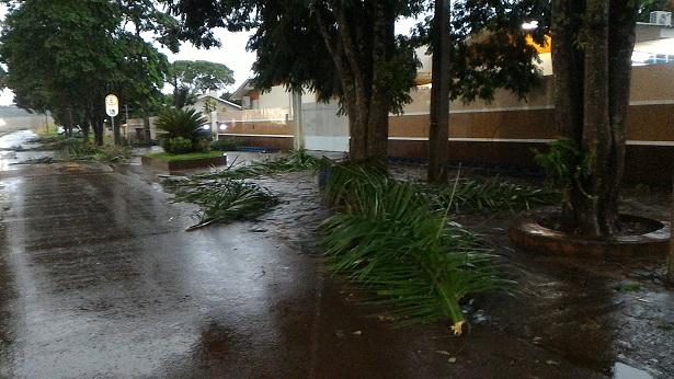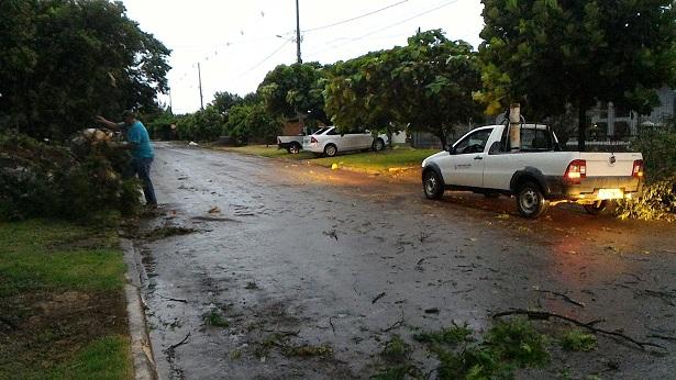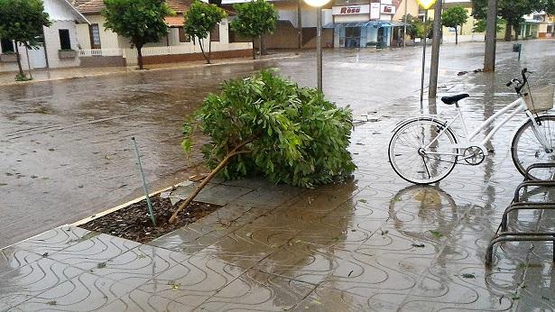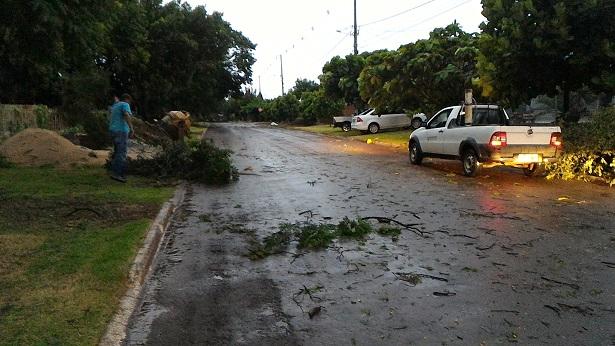 Algumas ruas ficaram alagadas com o volume excessivo de chuva, e uma equipe da Prefeitura Municipal esteve trabalhando para retirar os galhos que estavam atrapalhando o trânsito na área central da cidade.