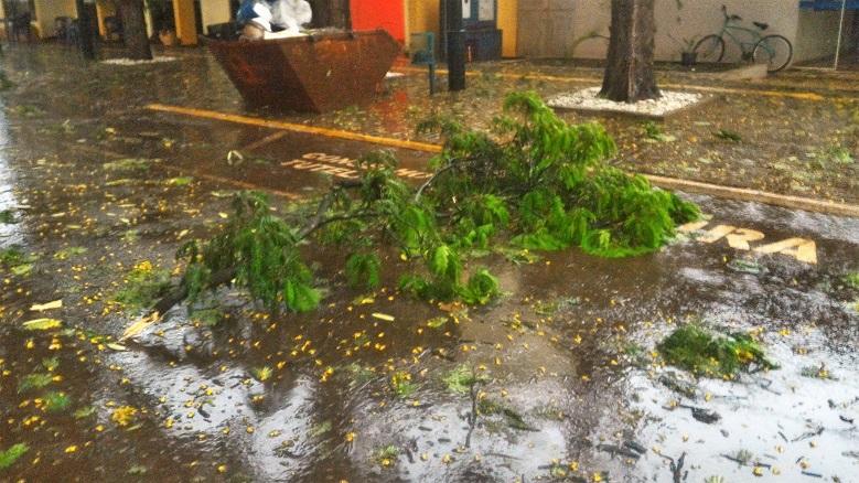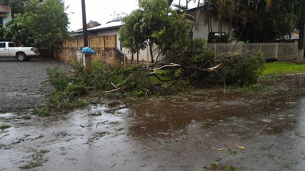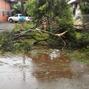 As fortes chuvas e ventos, que ocorreram no início da noite desta quinta-feira (09) em Nova Santa Rosa, resultaram em muitos galhos quebrados, sujeira pela cidade, pequenas árvores que caíram, além de uma residência na Avenida Tucunduva, proximidades da Escola Municipal Getúlio Vargas, que teve a garagem totalmente destelhada com a força dos ventos.