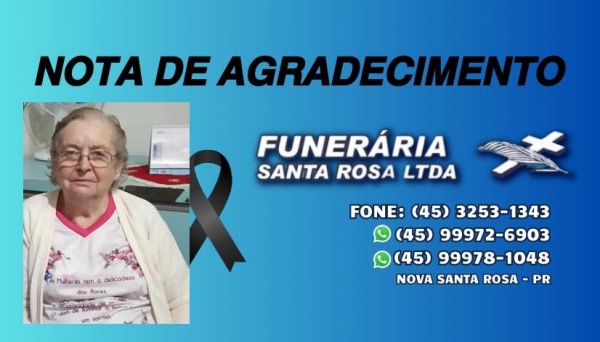 A família Frank de Nova Santa Rosa, ainda consternada pelo falecimento da Sra, Elfrida Agues Frank, agradecem: