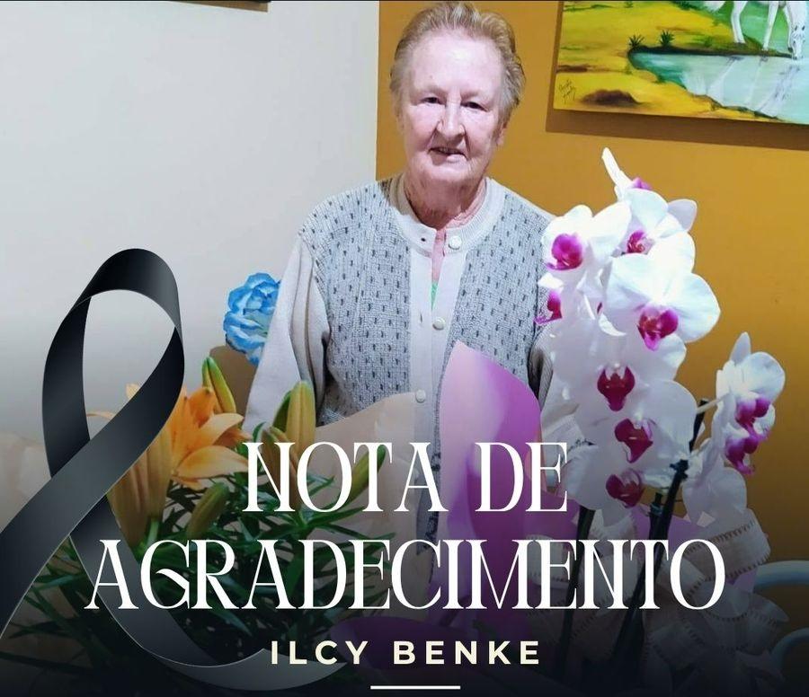Anastácia Benke juntamente com seus irmãos e familiares, ainda consternados com o falecimento da mãe, sogra, avó e bisavó Sra. Ilcy Benke, vem agradecer à Paróquia Santa Rosa de Lima, ao Padre Neimar, à Zenir pelos hinos, ao Grupo de Canto do Arno, ao Pedro Dresch pela ministração, à Nair, Profe Inês, ao Grupo Postulado de Oração, ao Hospital Bom Pastor e toda equipe médica, aos motoristas da ambulância e a todos os familiares e amigos que nos trouxeram flores e uma palavra de conforto neste momento de dor, a todos o nosso muito obrigado.