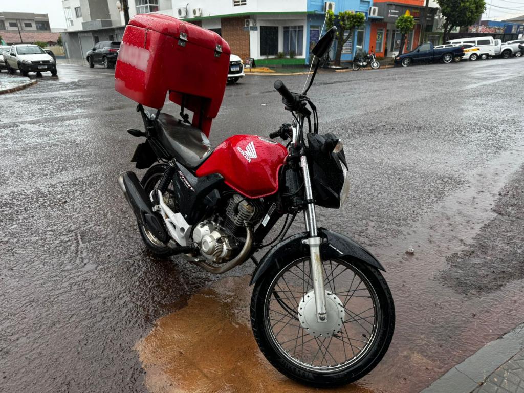 Uma colisão envolvendo um carro e uma motocicleta aconteceu no início da tarde desta sexta-feira (12) na área central de Nova Santa Rosa, nas proximidades da sede do Portal.