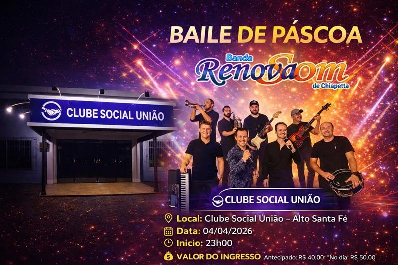 Neste sábado, dia 04 de abril, acontece o tradicional Baile de Páscoa no Clube Social União, em Alto Santa Fé.