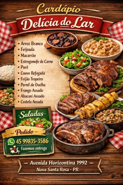 O Restaurante Delícia do Lar está localizado na Avenida Horizontina, 1992, em Nova Santa Rosa, saída para Novo Sarandi.