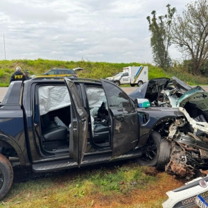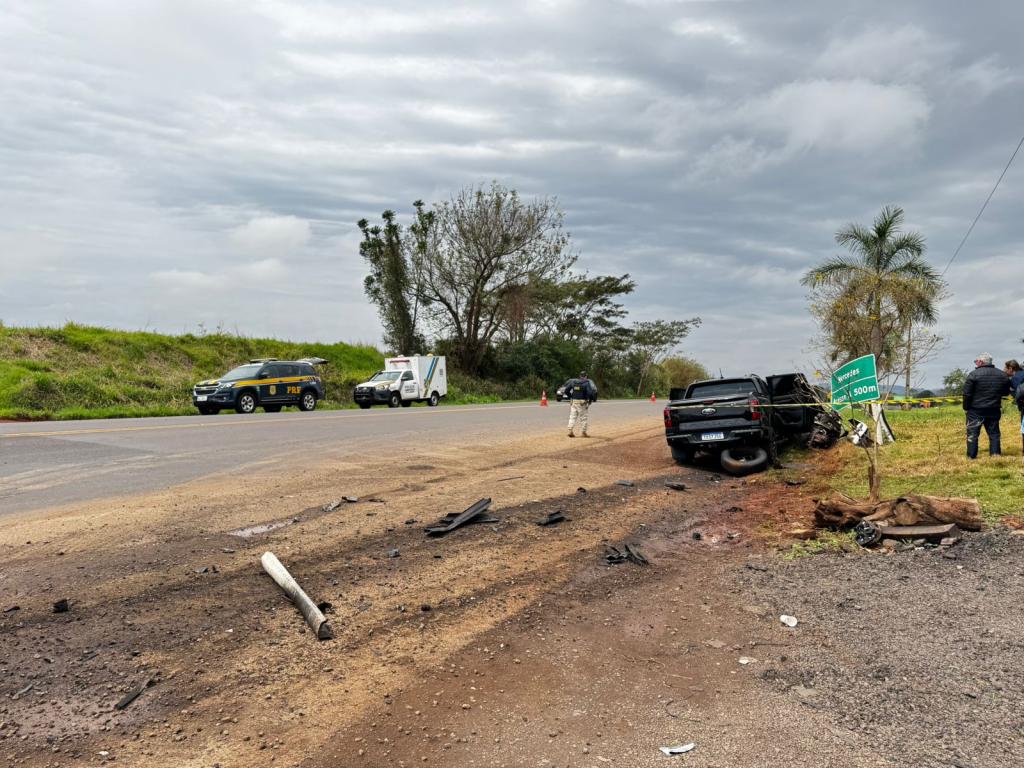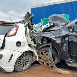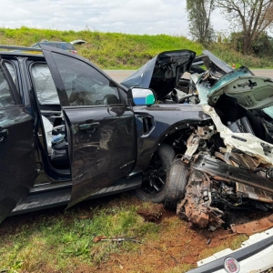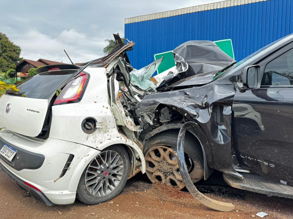 Com o impacto, os dois veículos ficaram completamente destruídos. A caminhonete chegou a invadir parte do carro de passeio, e os destroços se espalharam pela pista. A distância entre o ponto da batida e o local onde os veículos pararam foi de aproximadamente 60 metros.