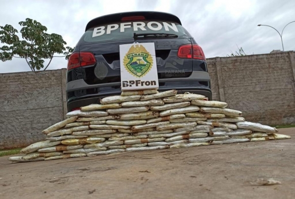 Em um dos pneus do veículo foram localizados pacotes contendo substância análoga a skank totalizando 30kg da droga.