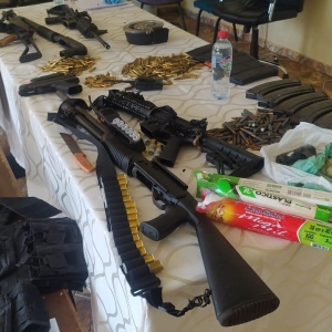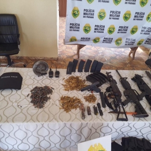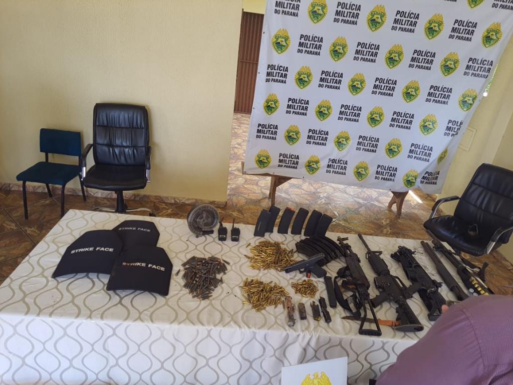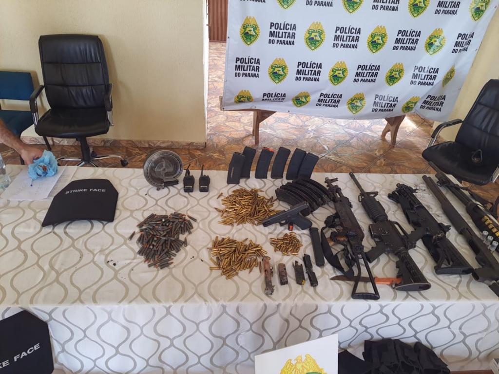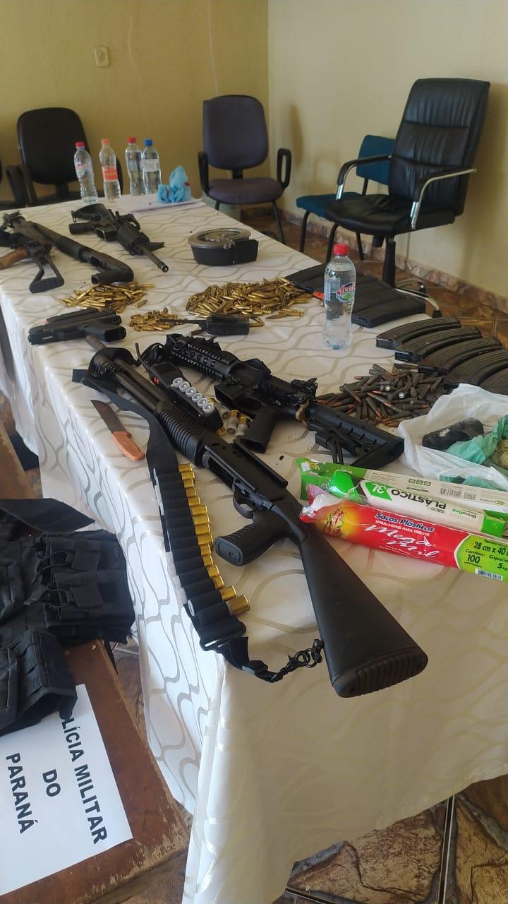 Um arsenal foi encontrado no local com os indivíduos. No total, foram aprendidos 3 fuzis (2 fuzis 556 e um fuzil AK 47), 2 armas calibre 12, 1 pistola, 1 Glock, coletes a prova de balas, diversos carregadores municiados e um carregador caracol com capacidade para 100 munições. Havia explosivos nos corpos dos criminosos e nos veículos utilizados na ação. Durante a troca de tiros um dos explosivos foi acionado.
