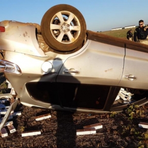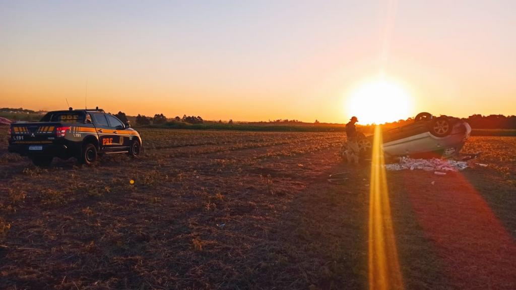 Em certo momento, já na BR 163, sentido Guaíra, o condutor acessou uma área de lavoura às margens da rodovia, perdendo o controle do veículo e capotando diversas vezes.