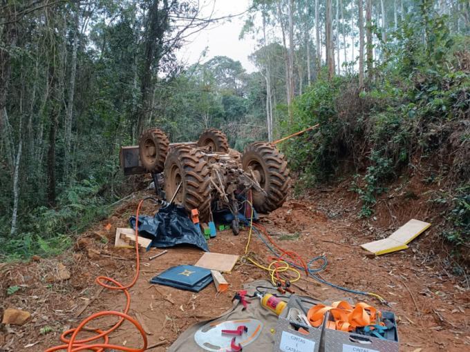O Serviço Aeropolicial de Fronteira (Saer), de Santa Catarina, SAMU e os bombeiros voluntários foram acionados por volta das 15h30 e ao chegar no local encontraram a criança que seria filha do casal de 8 anos, já em óbito. O casal gravemente ferido estava sob o trator tombado.