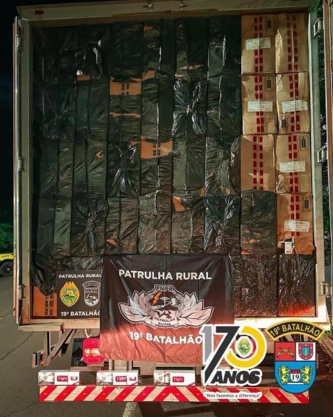 Após diligências, foram localizados aproximadamente 14.000 (catorze mil) pacotes de cigarros da marca "Eihgt" e "TE", sendo encaminhados para Receita Federal de Guaíra.