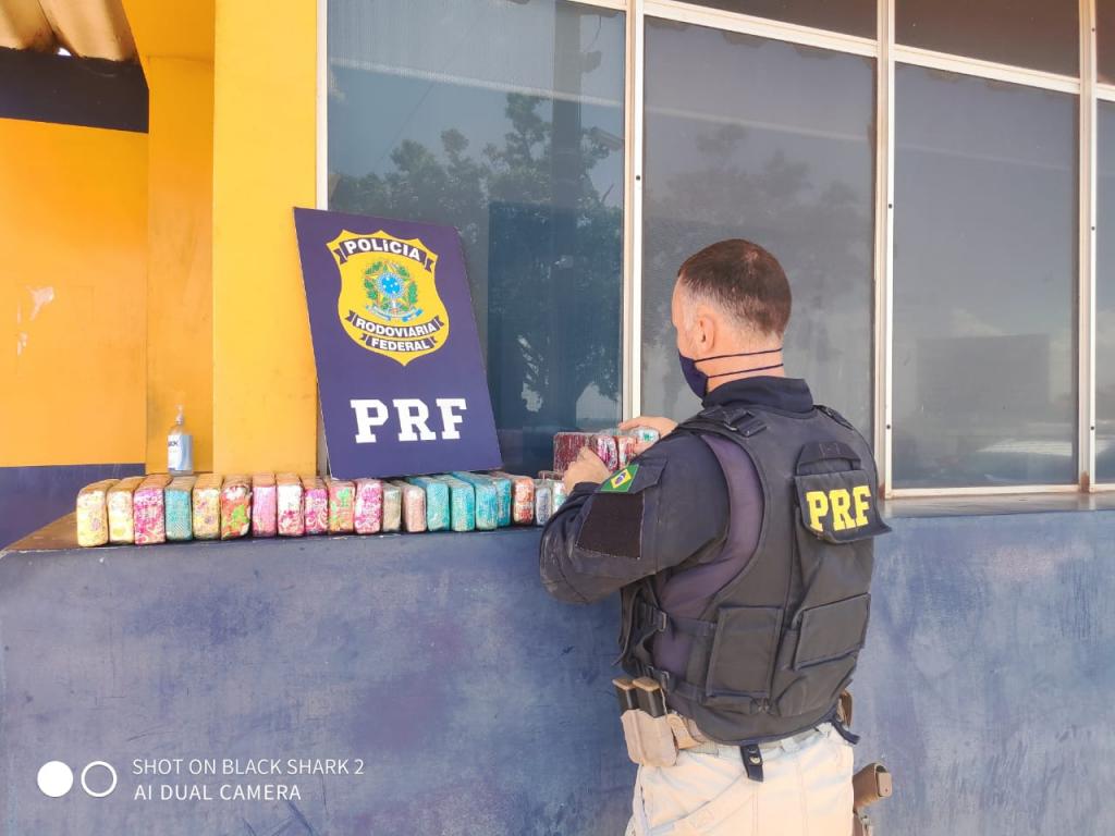 Diante do nervosismo apresentado pelo motorista além de respostas desconexas sobre a viagem, foi realizada fiscalização avançada no veículo, sendo encontrados, ocultos nas laterais traseiras, 38 tabletes de erva prensada com características de maconha, totalizando aproximadamente 28,2Kg.