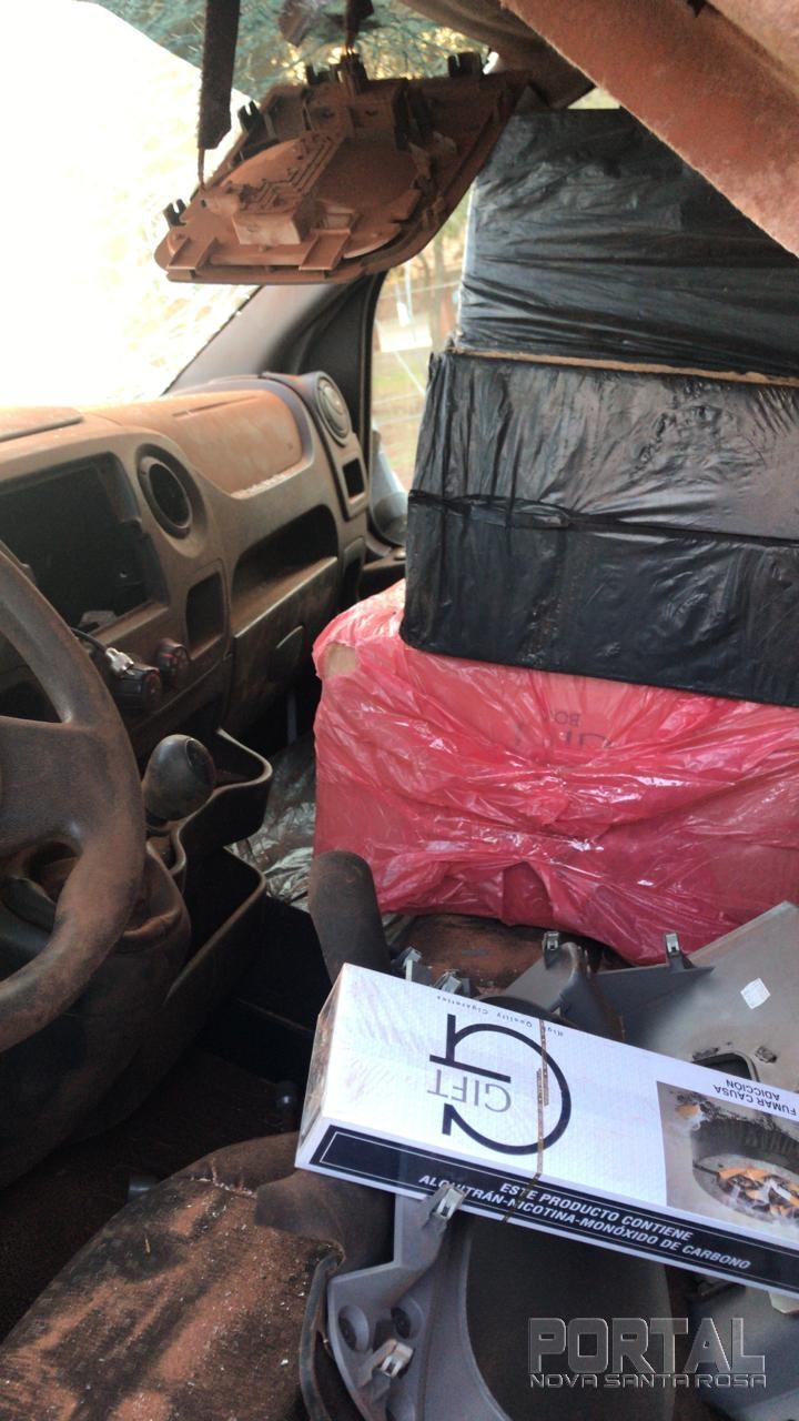 No local foram apreendidos 01 Van carregada com aproximadamente 150 caixas de cigarros contrabandeados do Paraguai, um prejuízo de aproximadamente R$400.000,00 à quadrilha criminosa.