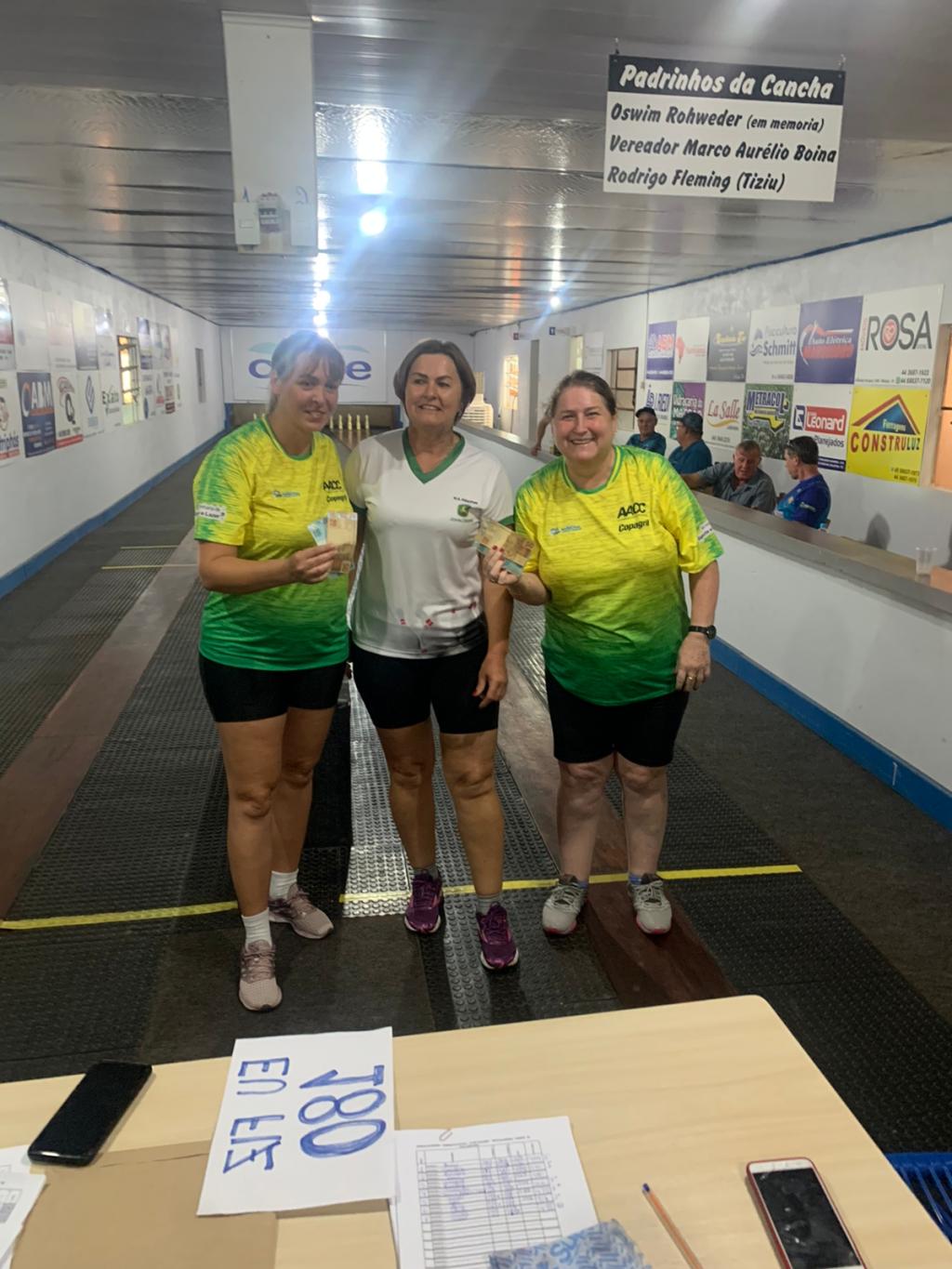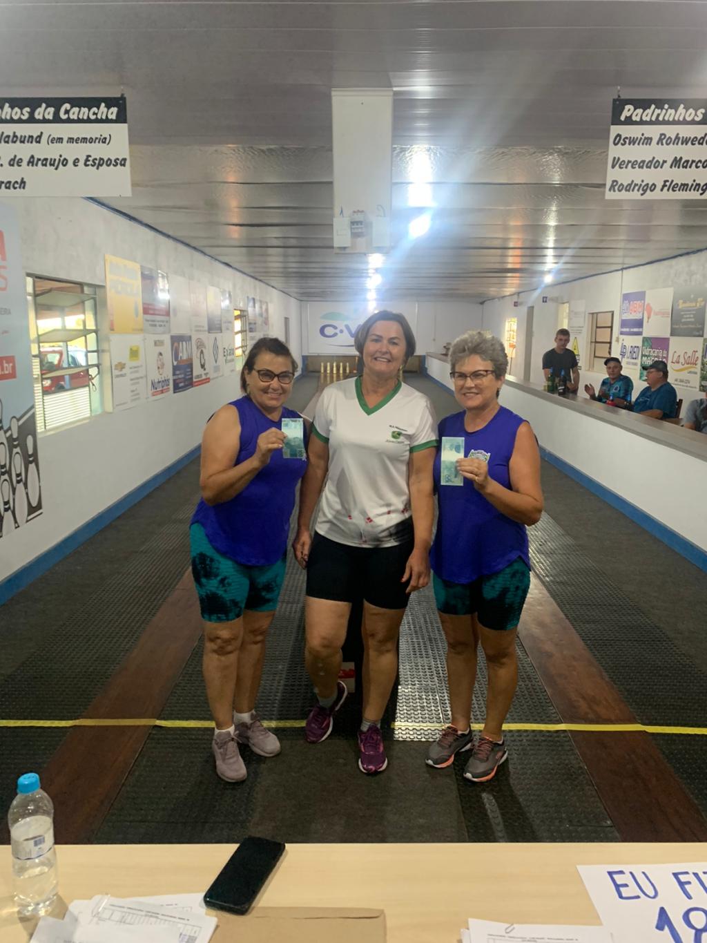 No feminino consagrou-se a dupla campeã: Liciane & Nena ambas atletas que defendem a camisa da Copagril, com destaque a atleta Nena que fechou a segunda passada atingindo os 180 pinos, destaque também a atleta Liciane que ficou com o prêmio do braço de ferro atingindo 350 pinos na soma das duas caminhadas.