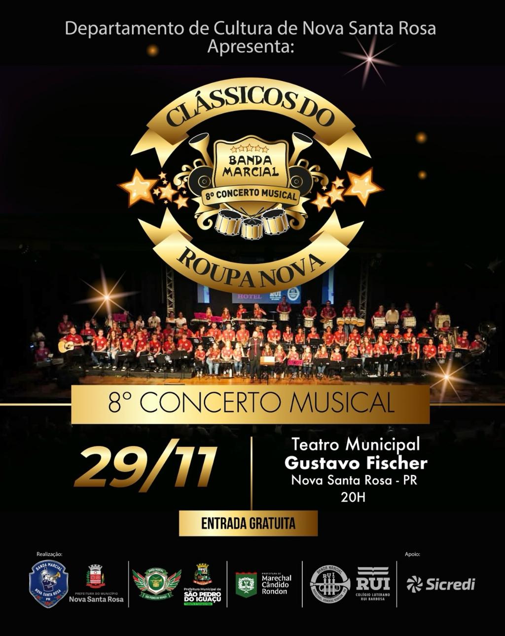 8º Concerto Musical da Banda Marcial com o tema “Clássicos do Roupa Nova” acontece neste sábado (29) em Nova Santa Rosa