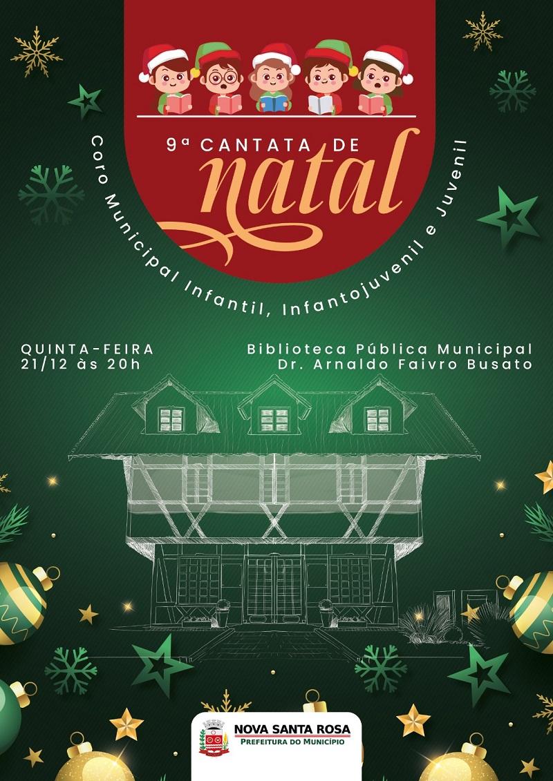 Acontece na quinta-feira (21) a partir das 20h, nas janelas da Biblioteca Pública Municipal Dr. Arnaldo Busato, a 9ª Cantata de Natal realizada pela Prefeitura de Nova Santa Rosa por meio da Secretaria de Educação e Cultura e da Secretaria de Assistência Social.