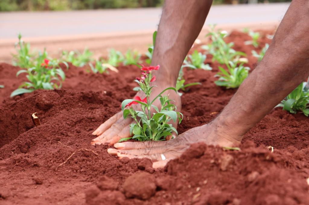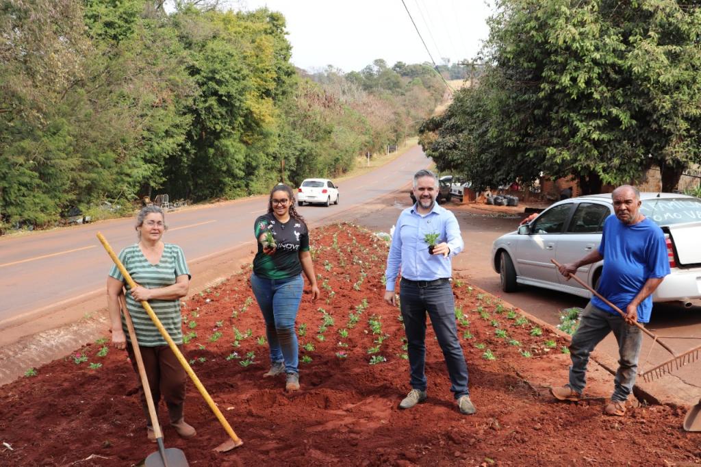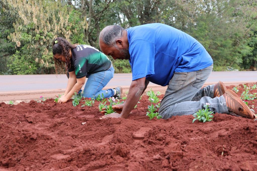 Queremos ressaltar nosso agradecimento especial à família do Senhor Osmairo Miranda, sua esposa Neiva e filha Gabriela que estão voluntariamente, plantando as flores com muito carinho e dedicação, ajudando nesta missão de trazer ainda mais beleza ao nosso município.