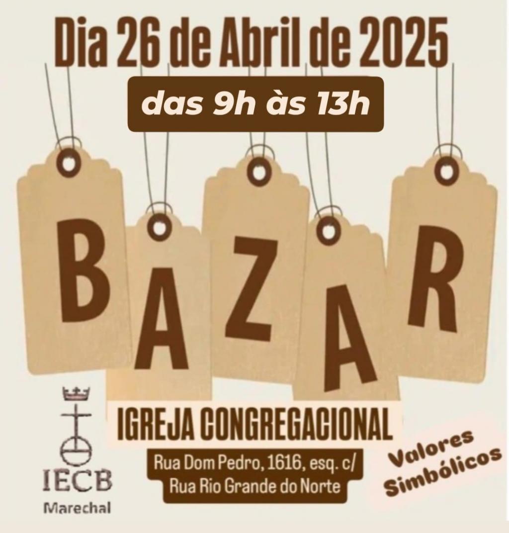 A Igreja Evangélica Congregacional do Brasil (IECB), de Marechal Cândido Rondon realiza a 13° edição do Bazar dos Trocados.