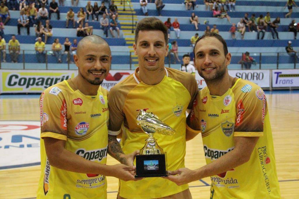 A partida de ontem foi marcada também pela entrega do troféu de artilheiro da Copa Paranaguá aos atletas Barbosinha, Jamur e Pixote, que marcaram 2 gols cada na competição a qual a Copagril Futsal foi campeão. O troféu foi entregue pelo atleta Caio Santana que representou a direção do Paranaguá.