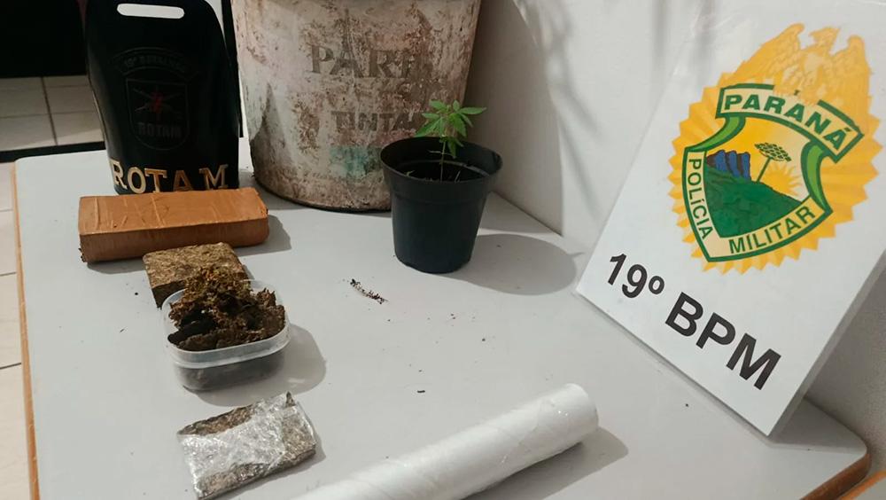 As equipes seguiram até o endereço indicado, onde, após resistência inicial, foi realizada a entrada no imóvel. No local, foram encontradas porções maiores de maconha, incluindo um tablete, pedaços fracionados da substância, além de duas plantas cultivadas em vasos. Também foram localizados materiais utilizados para embalar o entorpecente.
