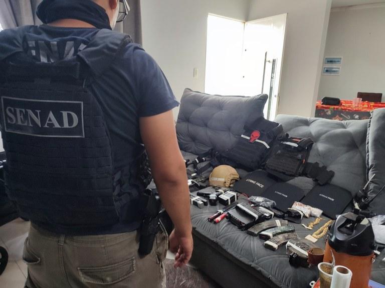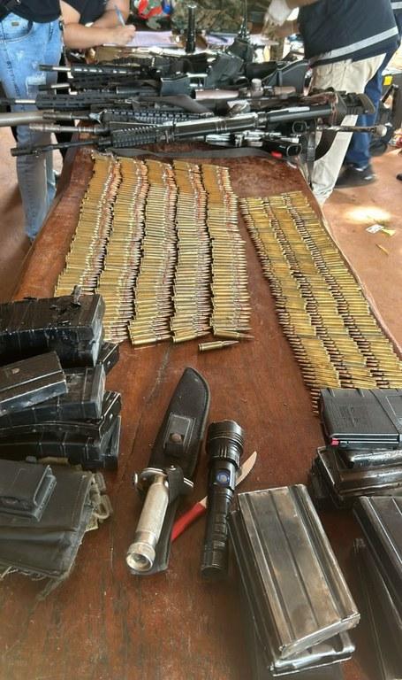 Chama a atenção o arsenal bélico apreendido com o grupo, em uma área rural na zona de Salto del Guairá, no Paraguai, próximo à fronteira brasileira. Fuzis, grande quantidade de munição e uma metralhadora antiaérea foram apreendidos na ação, que segue sendo realizada na região de fronteira, com a destruição de pistas clandestinas de pouso utilizadas para envio de cocaína e armas ao Brasil.