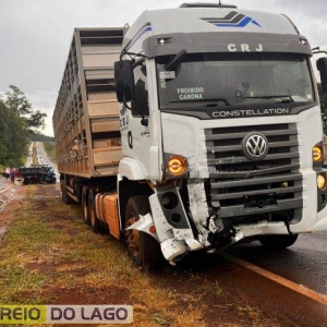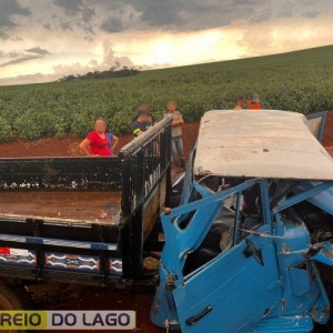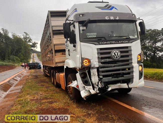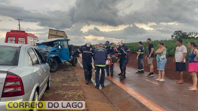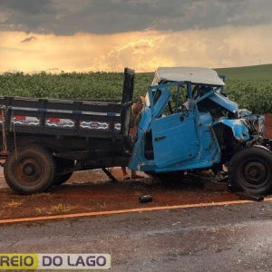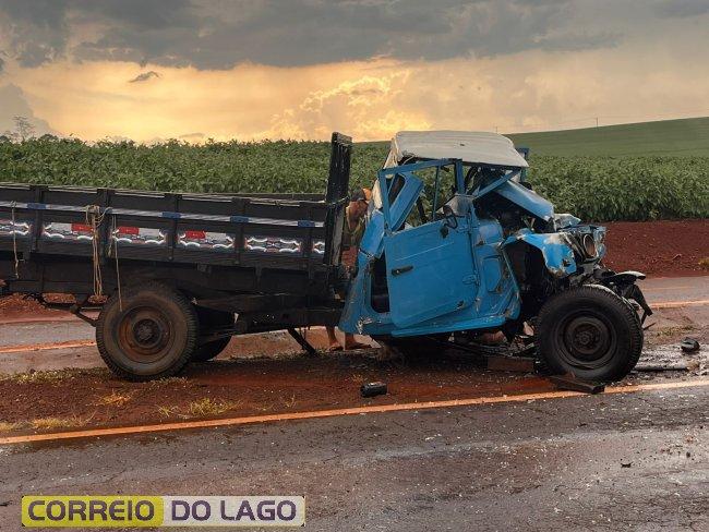 Um acidente gravíssimo aconteceu na tarde desta segunda-feira (1º) na PR-495, no distrito de Moreninha, em Santa Helena, região da Lagoa Seca. A colisão frontal envolveu um caminhão de transporte de suínos e uma caminhonete Toyota Bandeirante, modelo antigo.