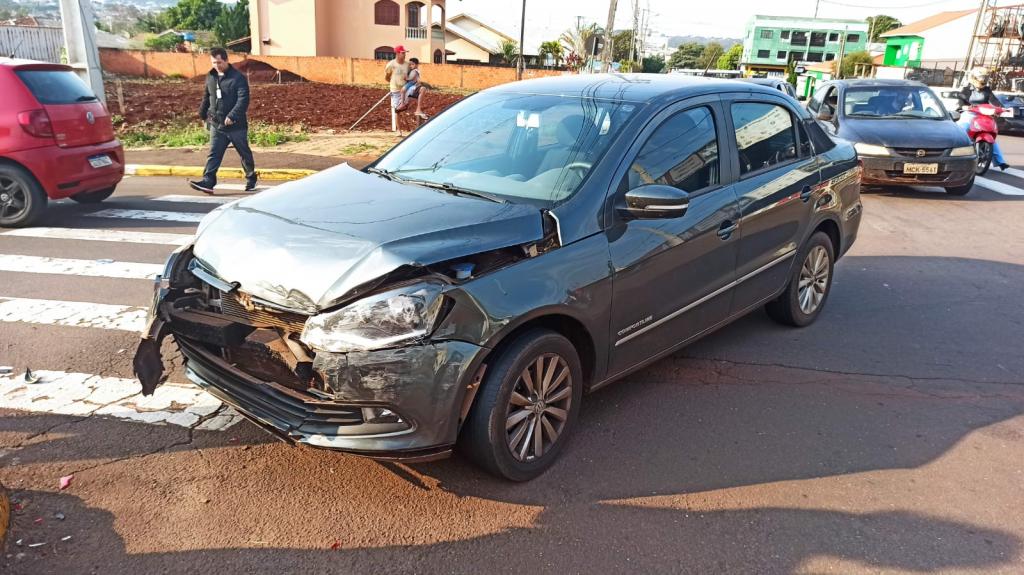Na manhã de hoje, o veículo Toyota trafegava pela avenida no sentido ao Jardim Europa e o Voyage seguia pela rua Almirante Tamandaré, no cruzamento das vias aconteceu a batida na região central da cidade.