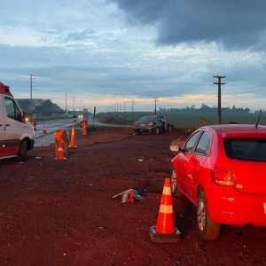 Um veículo Gol e um Corolla se envolveram em uma colisão no início da manhã desta quarta-feira (13) no trevo da C.Vale, que está em obras, na rodovia PR-182, no trecho que liga Palotina a Maripá.