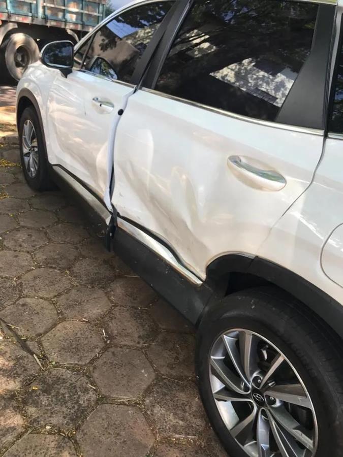 Um Focus com placa da cidade trafegava pela avenida quando teve a frente cortada por um veículo Santa Fé, com placa do Paraguai.