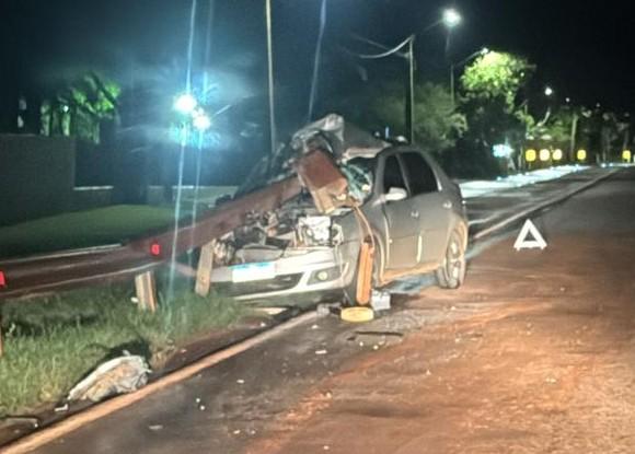 O sinistro ocorreu nas proximidades do Parque de Exposições João Leopoldo Jacomel e envolveu um veículo Renault Logan, com placas de Palotina.