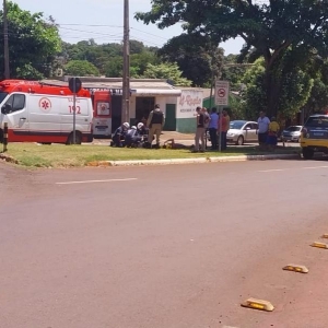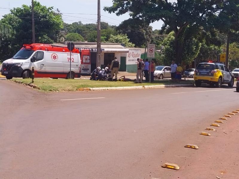 Conforme as informações, um carro Fiat seguia pela Avenida Thomaz Zeballos e, na rotatória com a Rua Ministro Gabriel Passos, acabou atingindo a moto Honda CG.