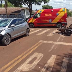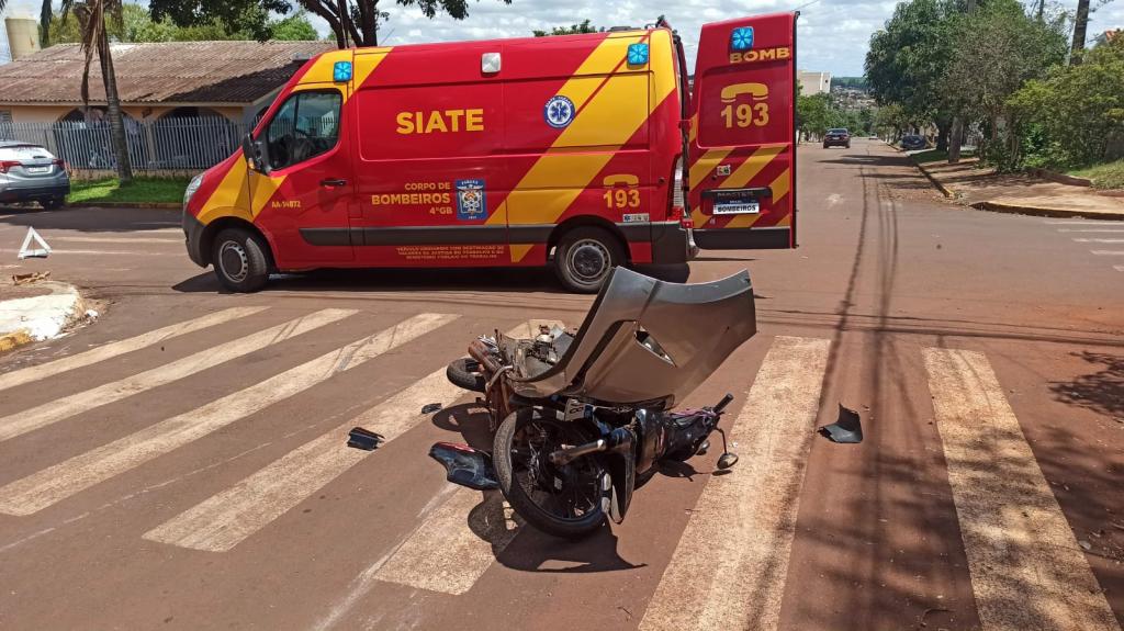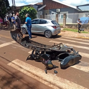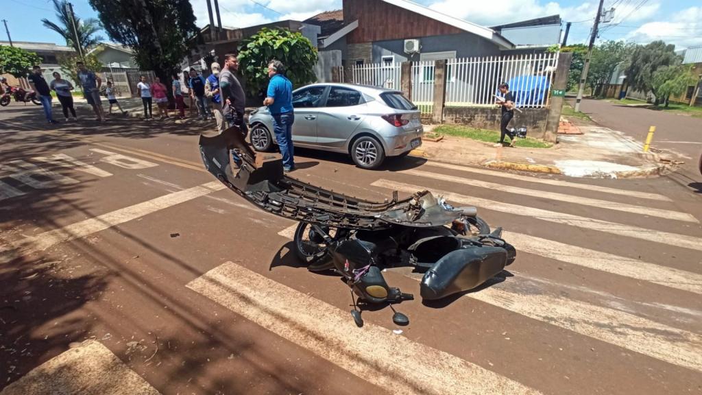 Um acidente com duas vítimas envolvendo um carro e uma moto foi registrado por volta das 13h40 desta quarta-feira no cruzamento da rua Virgínio Comerlato com rua Leopoldo Schmidt no Jardim Concórdia em Toledo.