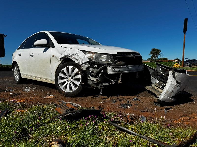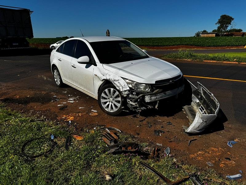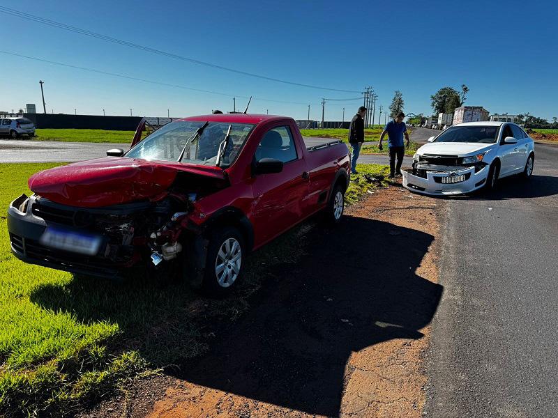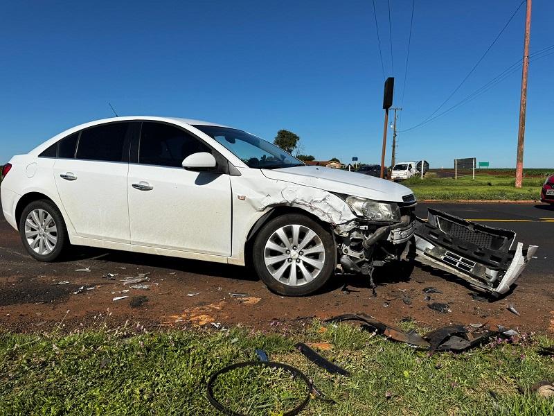 Um acidente resultou com dois carros com a frente danificada no trevo de Maripá na manhã desta quarta-feira, um veículo Saveiro e um Cruze com placas de Curitiba se envolveram na colisão, onde obras estão sendo realizadas na rodovia PR 182.