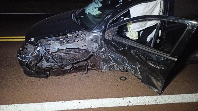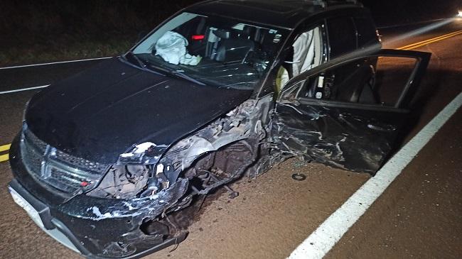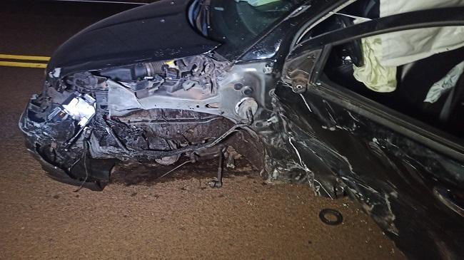 Um acidente entre dois carros foi registrado por volta das 05h30 deste sábado na rodovia PR-317 que liga Toledo ao município de Assis Chateaubriand próximo ao distrito de Ouro Preto e envolveu um veículo Fiat Fiorino com placas de Cascavel conduzido por um jovem de 26 anos e um veículo Dodge com placas Mercosul.